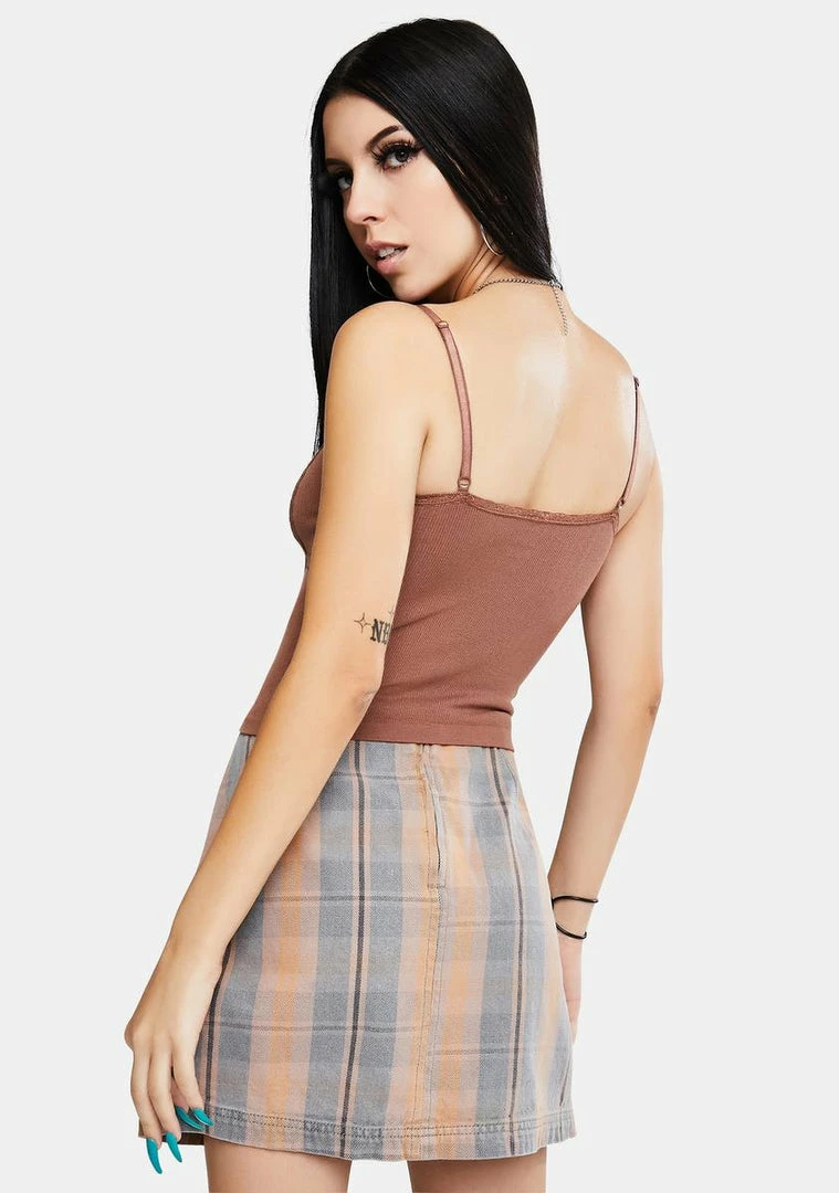 cuz you know better. This camisole has lace trim and cropped fit.