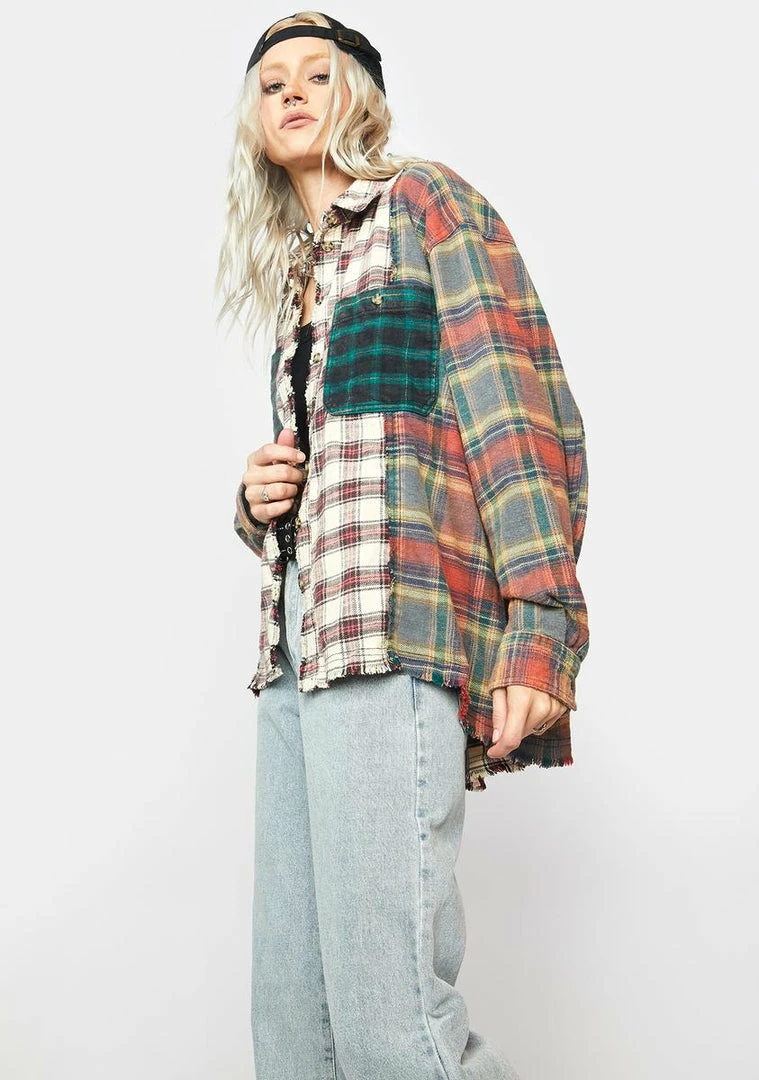 if I was ur bf IΓ’ΒΒd never let u go. This flannel has a spliced patchwork construction, a multi plaid design, chest pockets, a relaxed fit, and buttons up the front.